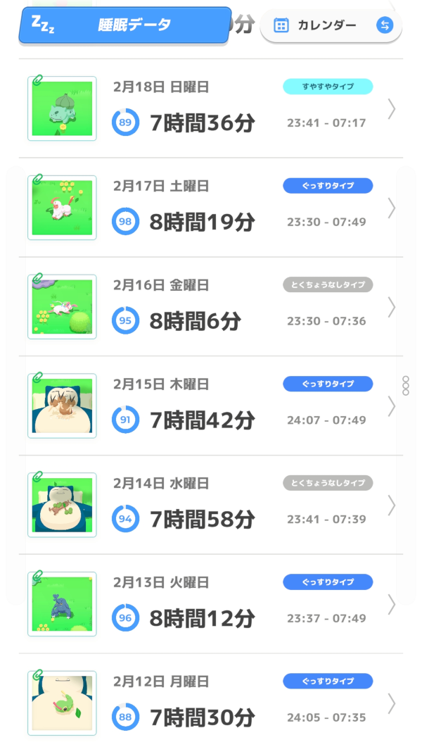 → 前回の記事 ポケモンスリープ Pokemon Sleep 開始から207日経過(2024-02-12)